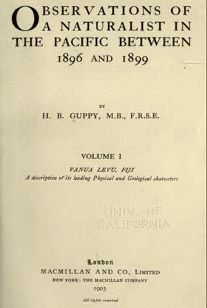 Observations of a naturalist in the Pacific between 1896 and 1899. Guppy, H.B. 1903 and 1906. |