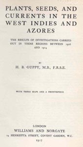the results of investigations carried out in those regions between 1906 and 1914. Covent Garden; London, England; Williams and Norgate xi, 531 pp., 4 leaves of plates, ill., 3 maps (1 folded); 24 cm. See: Table of Contents online. Guppy, Henry Brougham (England 1854-1926) (biography) The book is available online at the Biodiversity Heritage Library (BHL) |