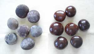 Sea-beans can be polished to a high gloss by using rotary or vibratory tumblers or manually by hand sanding with sandpaper.