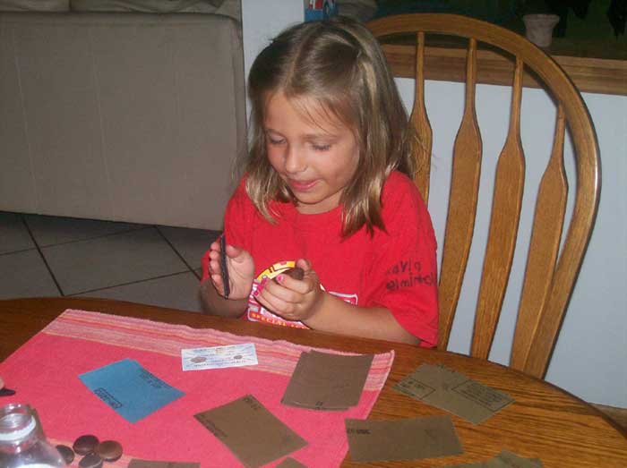 At some hardware stores, one can purchase 8½ by 11 sheets of dry sandpaper with varying degrees of "coarseness" and "smoothness." Grit numbers 120, 180, 220, 400, 600 and 1500 are suggested, although much finer grits will produce a better product. All one need do is cut the large sheets into smaller, easy-to-handle ones (maybe nine small sheets from one large sheet; see photo to left). Then, one obviously begins polishing with the coarse grits, progressively using finer and finer grits until a high, polished sheen is developed. With a little experience, one will quickly learn not to select beans with deep pits, "dents" or other irregularities! As final undertakings, the bean can be buffed with the "back" of the 1500 grit sandpaper and a light coat of furniture wax can be then be applied. Each bean can take up to five or more hours of sanding, polishing and buffing. | ![]() Polished and unpolished, in each container. |