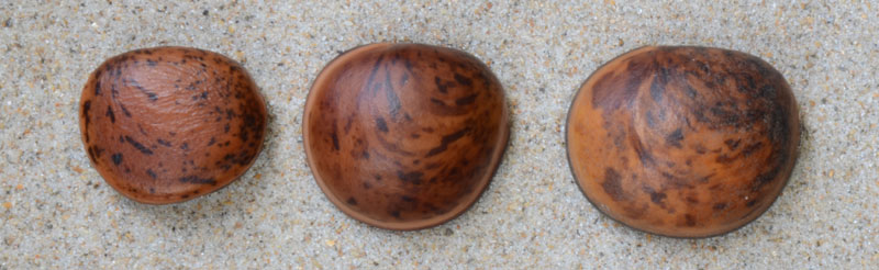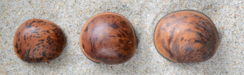 The following images are of Dioclea reflexa seeds from (left to right): 1. Madagascar, 2. Benin Africa, and 3. Nigeria Africa.
