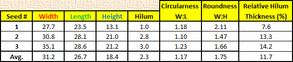 Measurements (mm) of seeds (left to right): 1. Madagascar, 2. Benin Africa, and 3. Nigeria Africa.