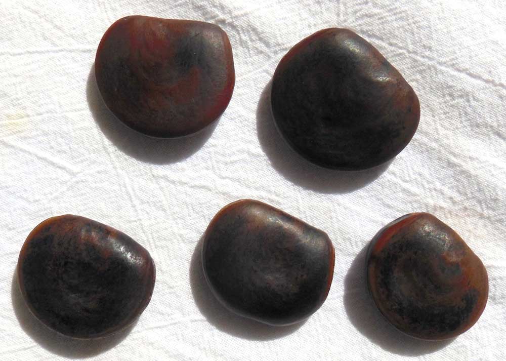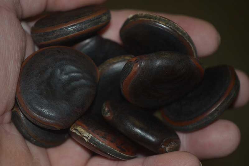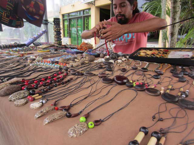 Costa Rican artisan with seed jewelry. Note the three "Large Flat
