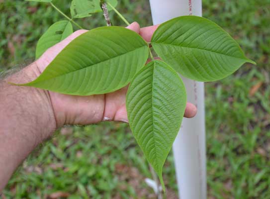 Mucuna, the midrib of the paired leaflets is centered in species of