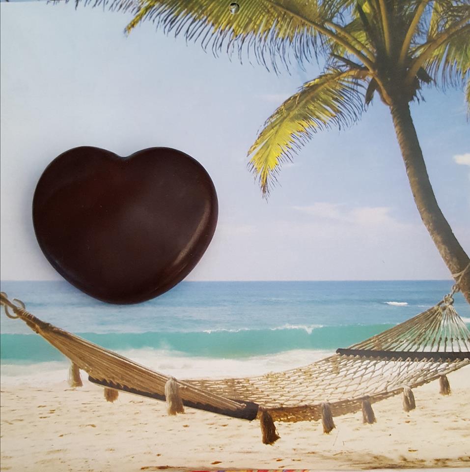 A very hearty Seaheart! The Seaheart gets its name from its shape. Although there is quite a variety of sizes and shapes of Seaheart seeds, some do indeed take on a very heart shape! Photo: © Jill Moore Hedrick; Her seed, placed on a August photo from a "Tropical Beaches 2018" calendar made in China and distributed by Dolgencorp of Goodlettsville, TN. |