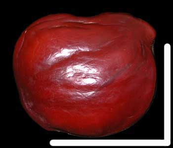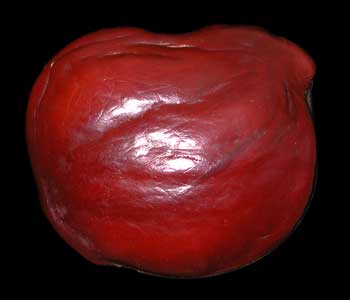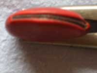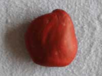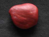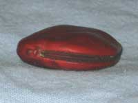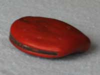Side angle view, showing the narrow hilum and its limited extent (less than half way around the seed; see image below), along with the inflation and curvature of the seed.