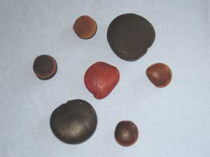 Ormosia coutinhoi from Little Cayman Island, centered, along with other seeds