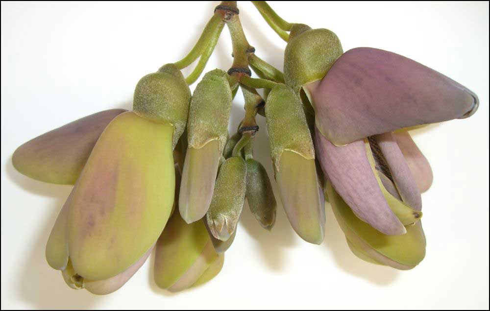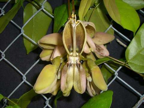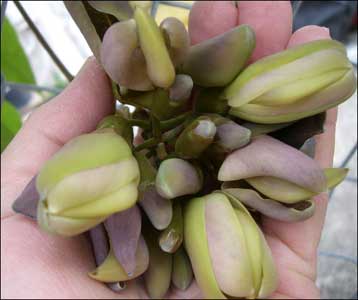 The characteristics of any genus, including the genus Mucuna, is exemplified by one single species that is designated to do so. This "characteristic" species, designated to depict what other species should be included in the genus, is called the "type species". In the case of Mucuna, the "type species" is: urens! Thus, the characteristics of Mucuna urens should be used to answer the question "What is a Mucuna"? In botany, the reproductive structures... the flowers!... are often given a higher "weighting" of importance (versus seeds, leaves, etc.) in determining what other genera and species are similar or not. Gina's flowers (shown below) of Mucuna urens, because it is a type species, are "mission critical" to use to (help?) determine what "Mucuna sensu stricto" really is! Photographic documentation of Mucuna urens, their flowers, their structure, the resultant pods and seeds are critical to furthering our knowledge and characteristics of the genus Mucuna and all other species of Mucuna. The flowers are also important to distinguish Mucuna from other related genera (e.g., Dolichos, Dioclea, Strongylodon, Gigasiphon, etc.). |