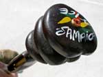 Often referred to as Mancala and Ourri in Africa, and Sungka in the Philippines, the game is played with Nickarnuts on a rectangular board with a row of 6 cuplike depressions or wells on each side and a larger well at each end. Game rules and variations are included on this site. Download a shareware version of the Mancala (aka Wari) game at ImageSoft. |