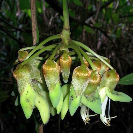 The two above images of Mucuna monticola and Underwood's Long-Tailed Bat (Hylonycteris underwood)